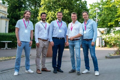 Thomas Roin (Ltd. Oberarzt Wirbelsäulenchirurgie), Stefan Mannstein (Assistenzarzt Abt. Kinderorthopädie), Dr. Benedikt Leidinger (Chefarzt Kinder- und Neuroorthopädie), PD Dr. Markus Konieczny (Chefarzt Wirbelsäulenchirurgie), Dr. Joachim Raabe (Chefarzt Anästhesie, Intensivmedizin, Schmerzmanagement).